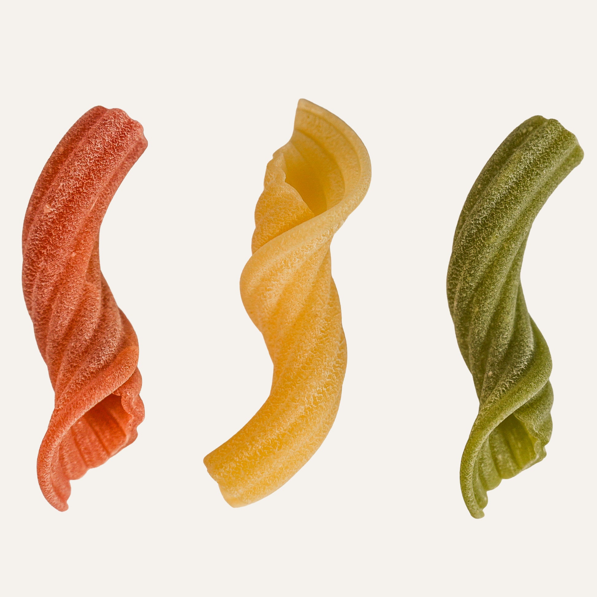 RUSTICHELLA alla CONTADINA, dove la rustichella bianca incontra gli spinaci e la barbabietola, per un’esplosione di colori. Saporita e fantasiosa è da condire a piacimento.