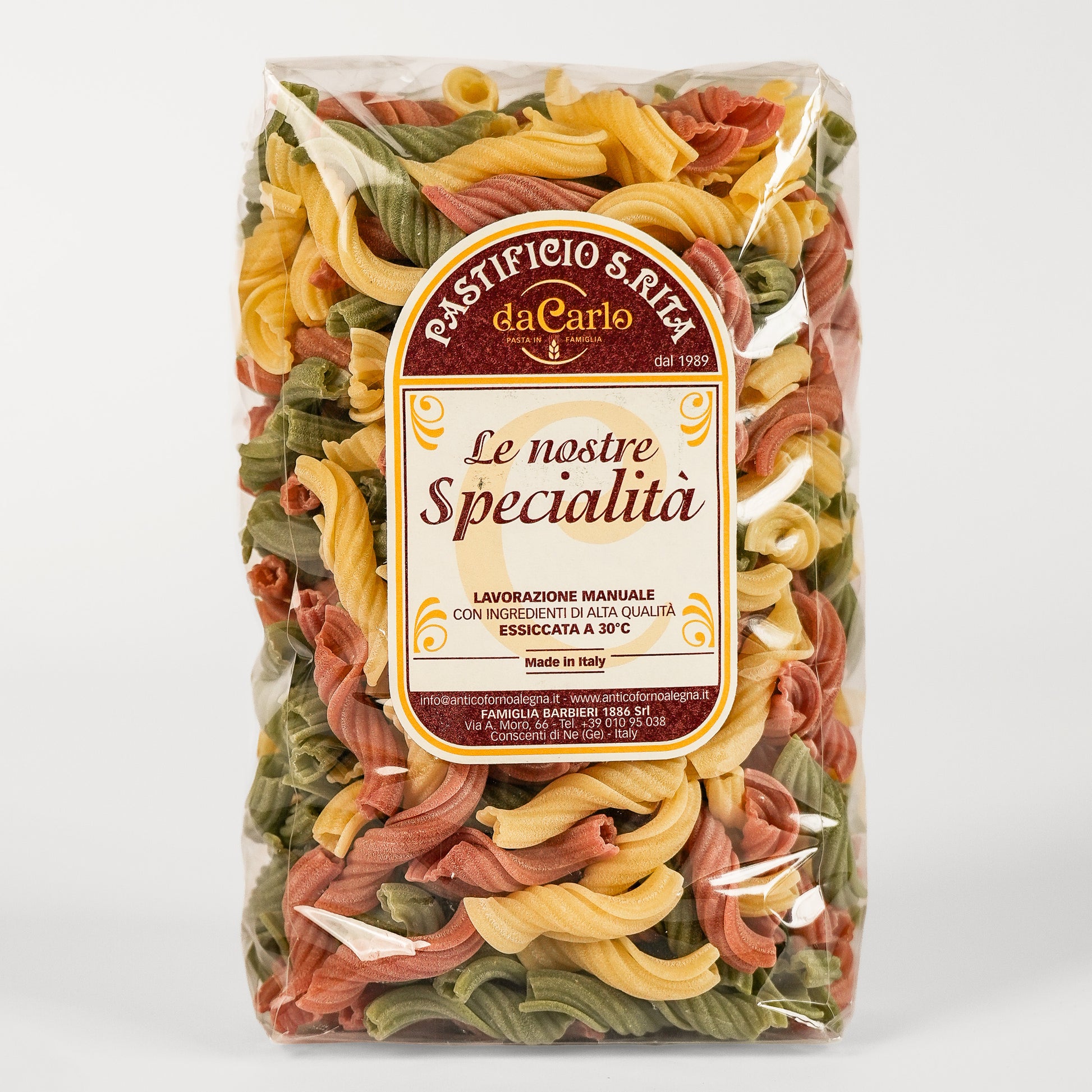 SEMOLA DI GRANO DURO, spinaci disidratati in polvere (min.4%), barbabietola disidratata (min. 4%).